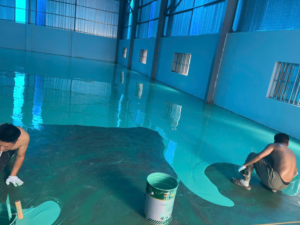 Thi công lớp epoxy tự san